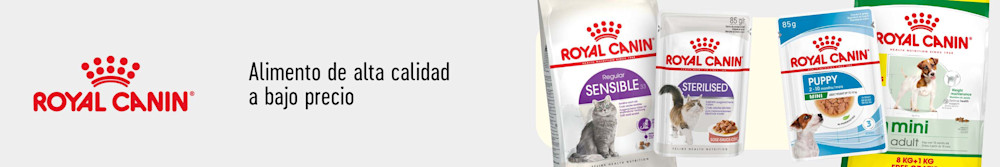 En bititba, la comida húmeda para gatos de Royal Canin viene en sobres individuales. Hay muchas variedades sabrosas para elegir. Para orientarte, los productos están clasificados según la edad, la raza y los packs ahorro. El alimento dietético para gatos de Royal Canin viene en una gama veterinaria separada. Puedes acceder cómodamente a ella mediante el menú lateral.